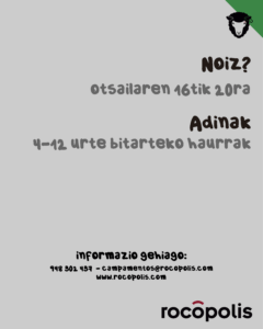 Inauteri hauetan, jolasa, kirola, laguntasuna eta ikaskuntza Rocopolisen. Zuen zain gaude!