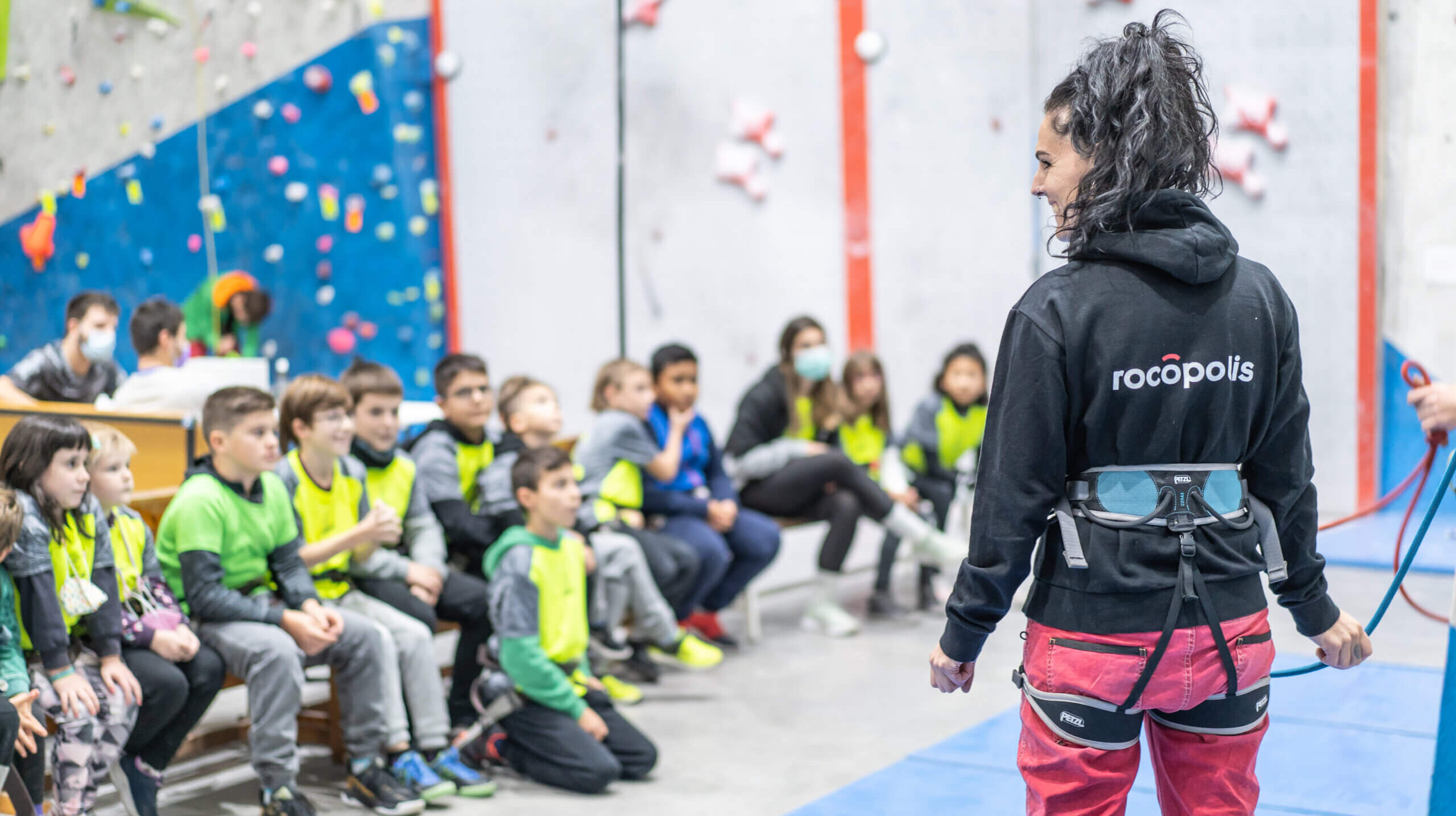 En la actividad con escolares las zonas de uso habitual son las paredes verticales del sector de iniciación y las que tienen algo de desplome, las zonas de boulder, el rapel vertical y la rampa.