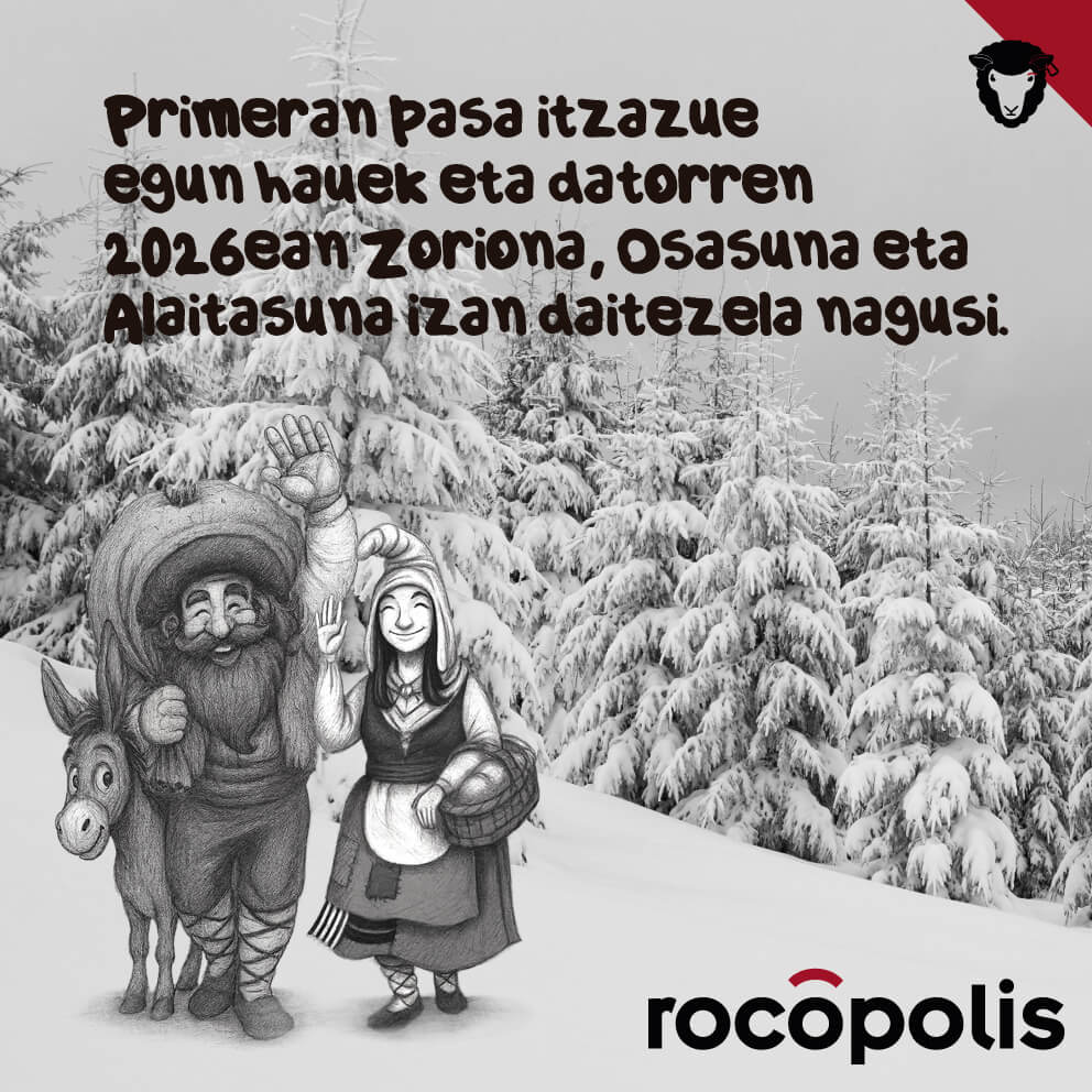 [vc_row css_animation="" row_type="row" use_row_as_full_screen_section="no" type="full_width" angled_section="no" text_align="left" background_image_as_pattern="without_pattern"][vc_column][vc_column_text css=""] Rocópolis-etik egun hauek zoriontsu eta alai pasa ditzazuela opa dizuegu! Egun hauetan atseden hartzea, lagunekin oroitzapenak partekatzea eta...